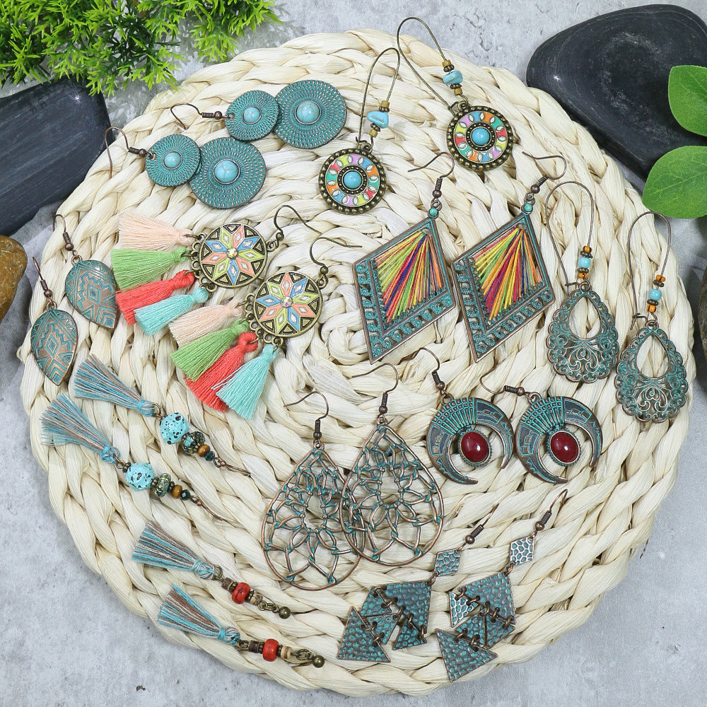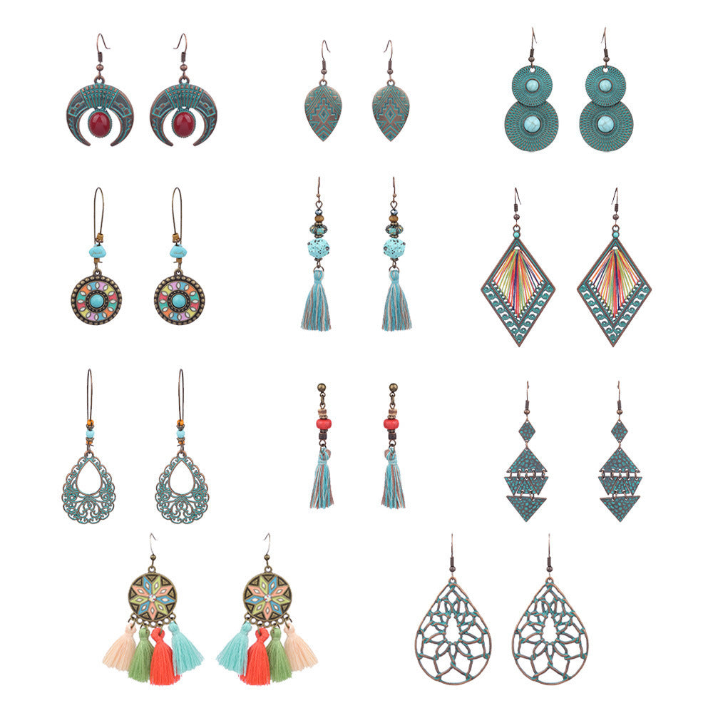أقراط نسائية مرصعة بالألماس بتصميم بوهيمي مجوف