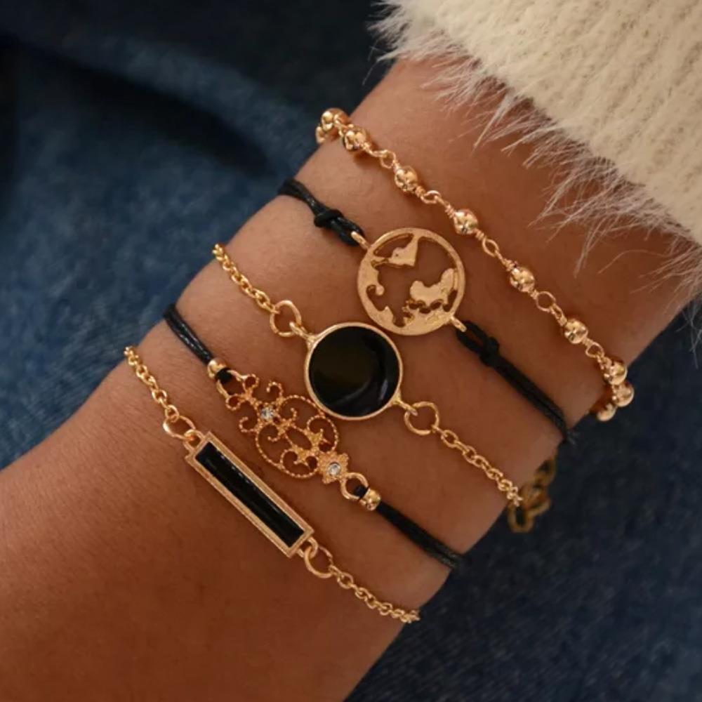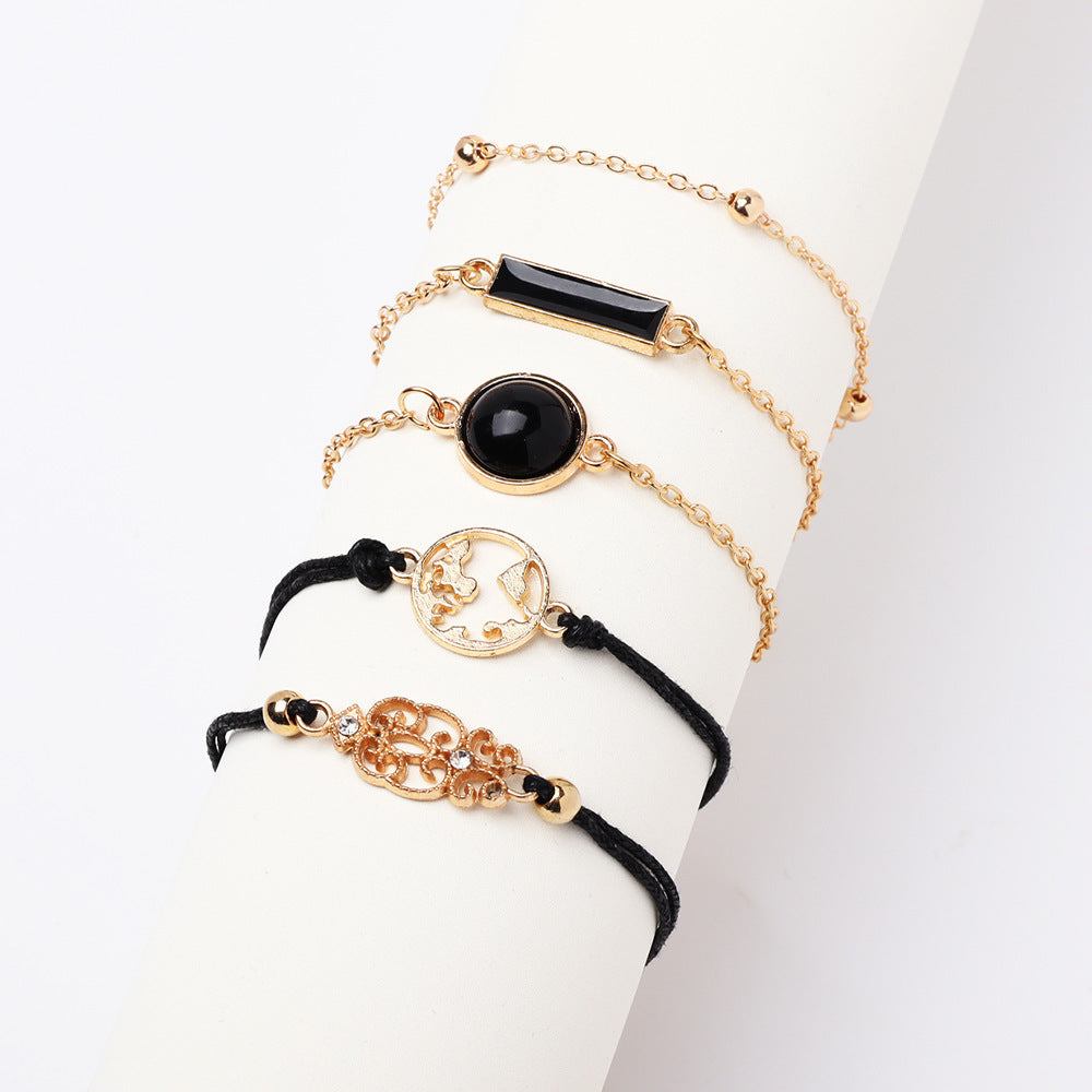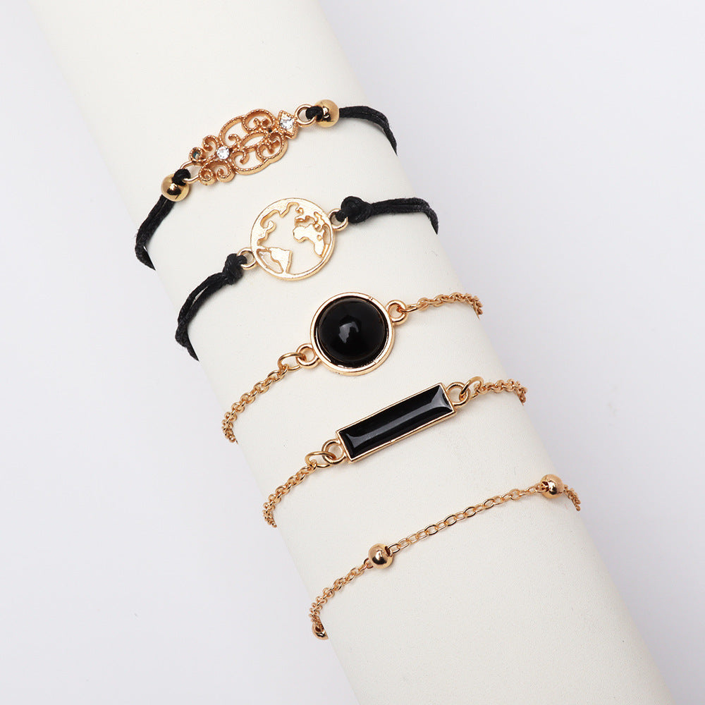 Drip Oil Rectangular Diamond Set Map Bracelet Five Piece Set