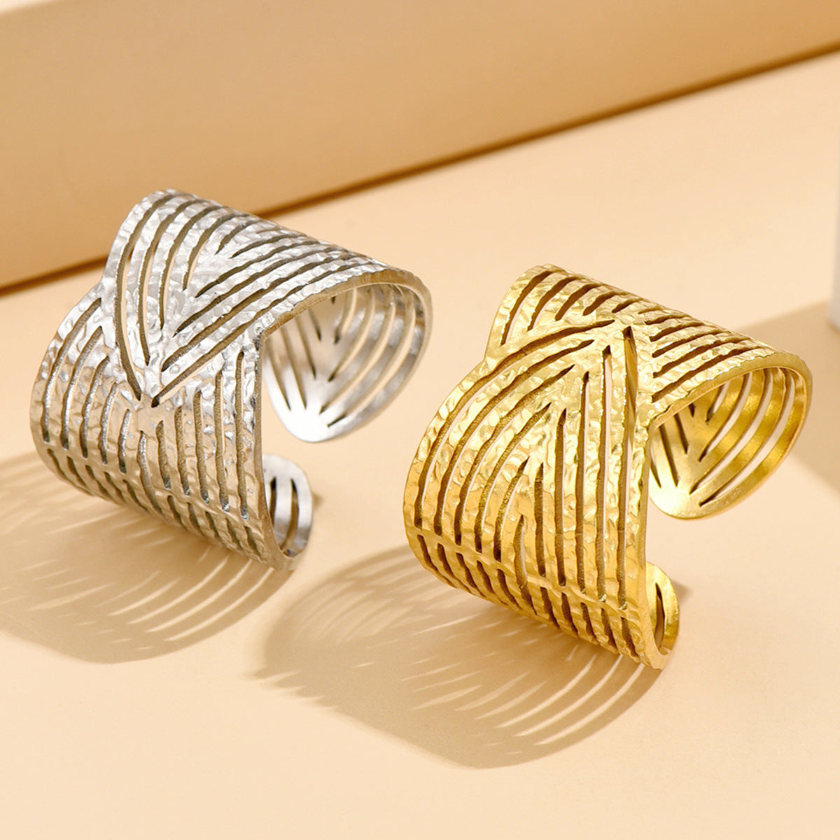 Introducing the Elegant Retro Twin Style Wide Surface Stainless Steel Ring, designed specifically for women who appreciate timeless elegance. This exquisite ring features a unique geometric shape, enhanced by a striking wide surface that showcases its retro style.