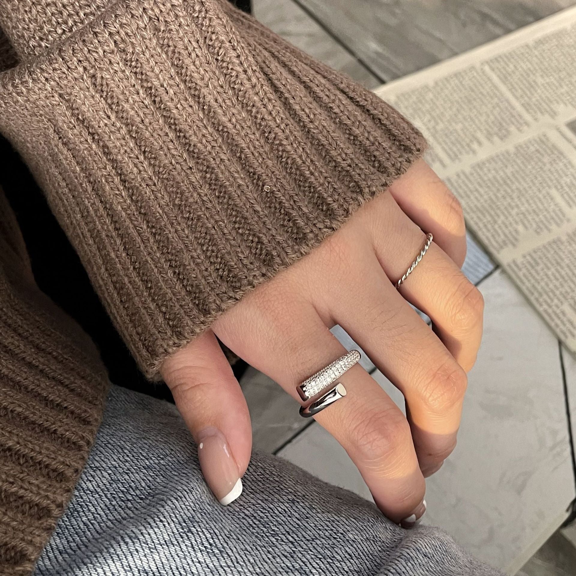 S925 Sterling Silver Open Index Finger Zircon Ring For Women