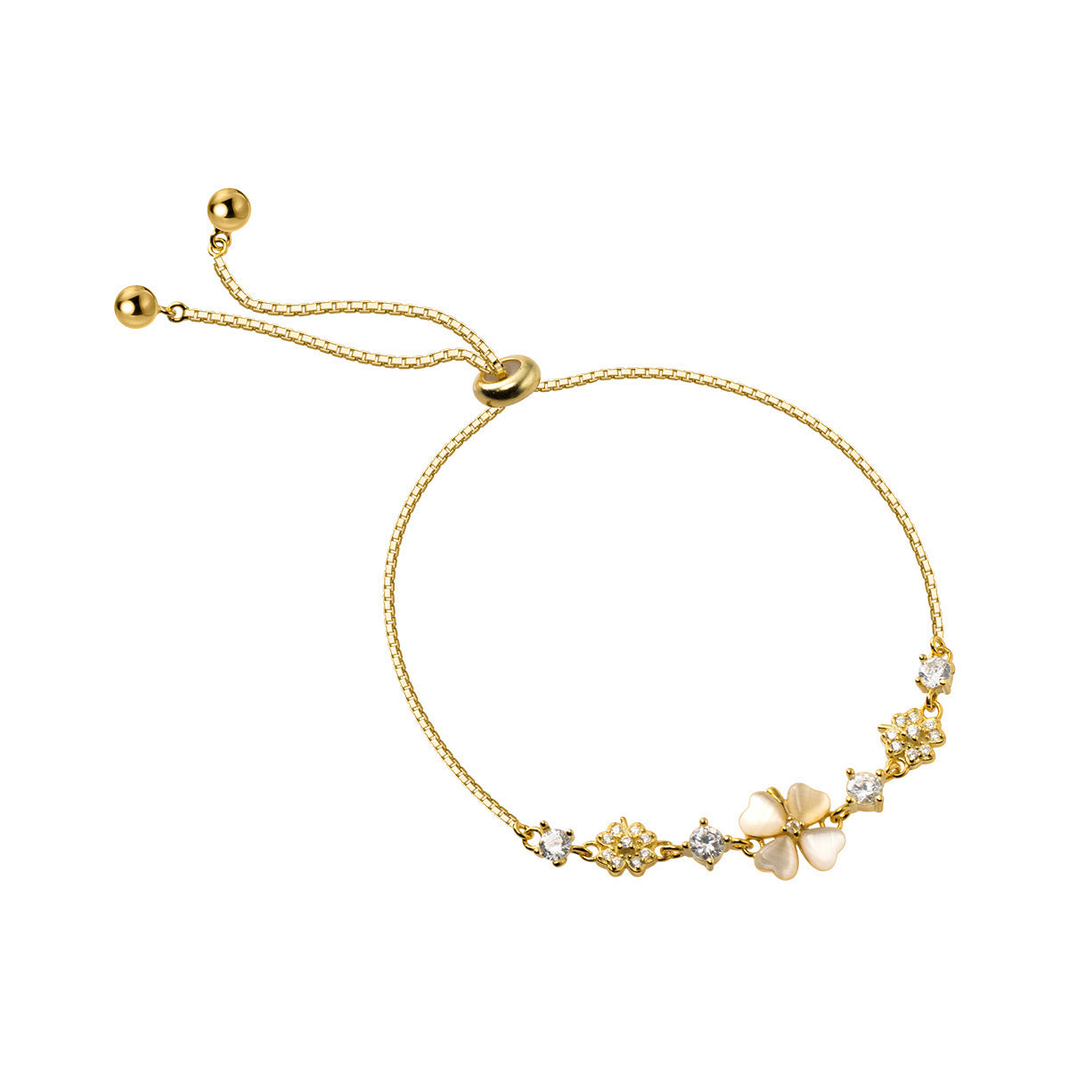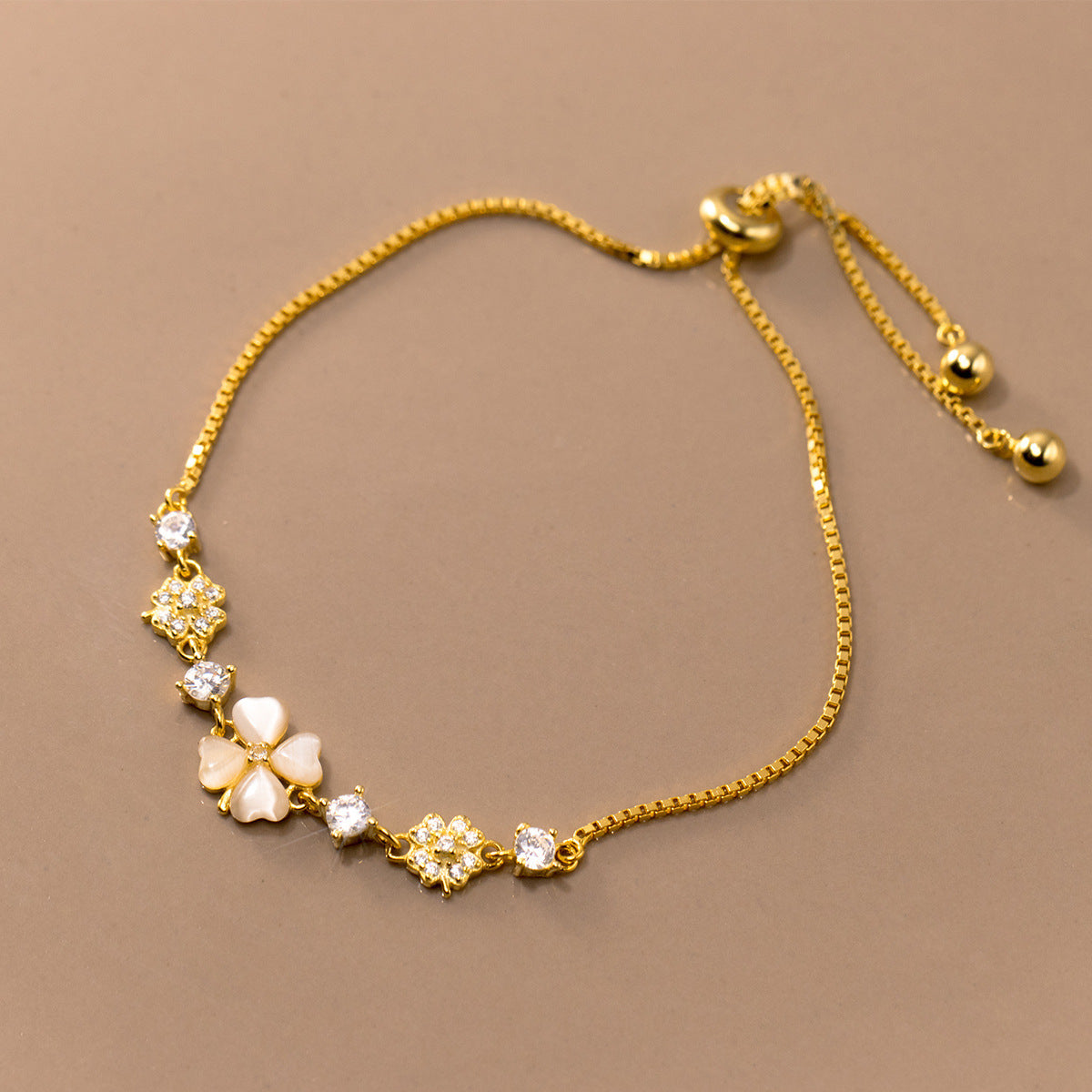 Silver Diamond Four Petal Flower Synthetic Opal Women's Bracelet
