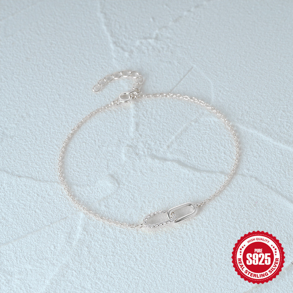 Simple S925 Sterling Silver Cross Double Buckle Zircon Women's Bracelet