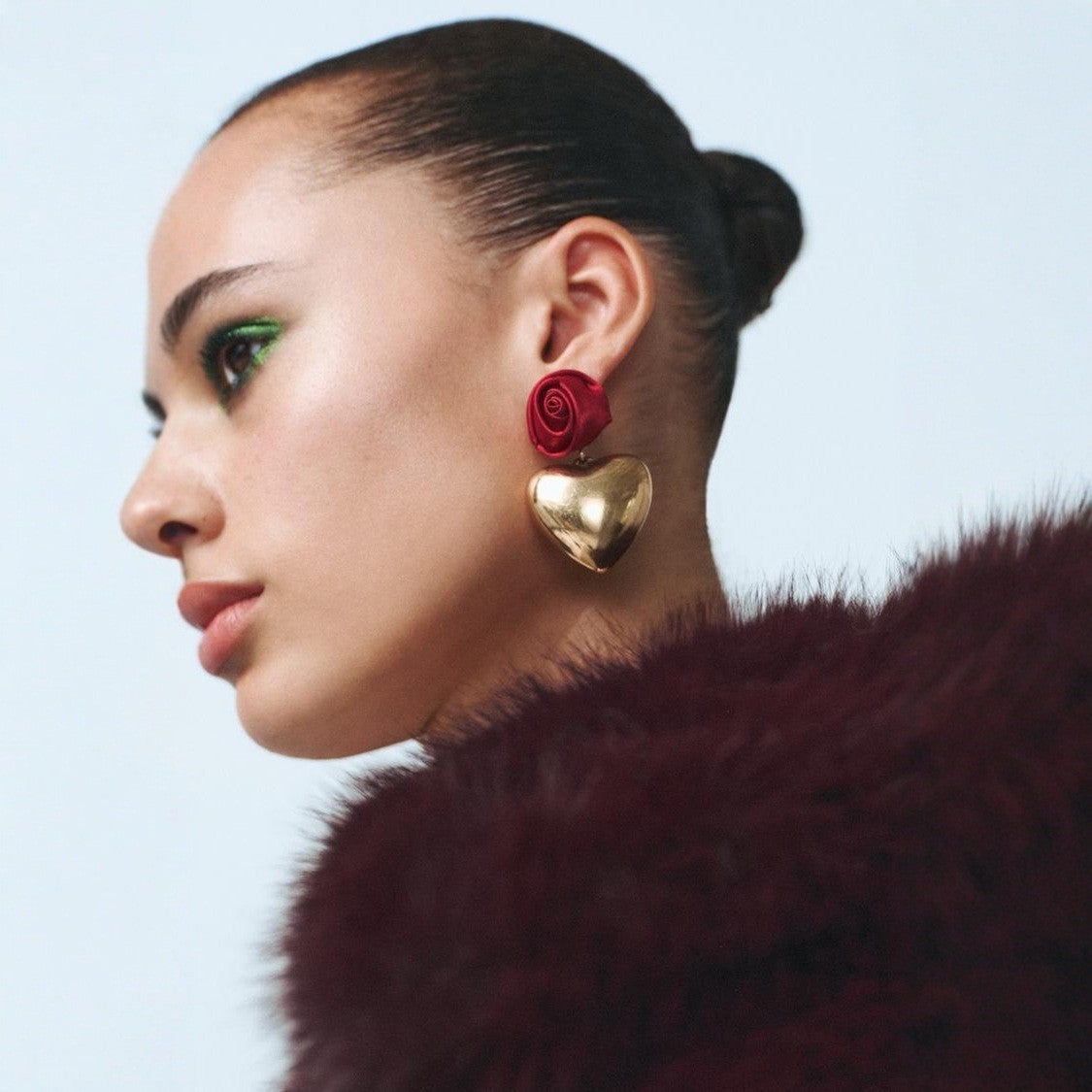 Valentine's Day Three-dimensional Rose Heart-shaped Earrings